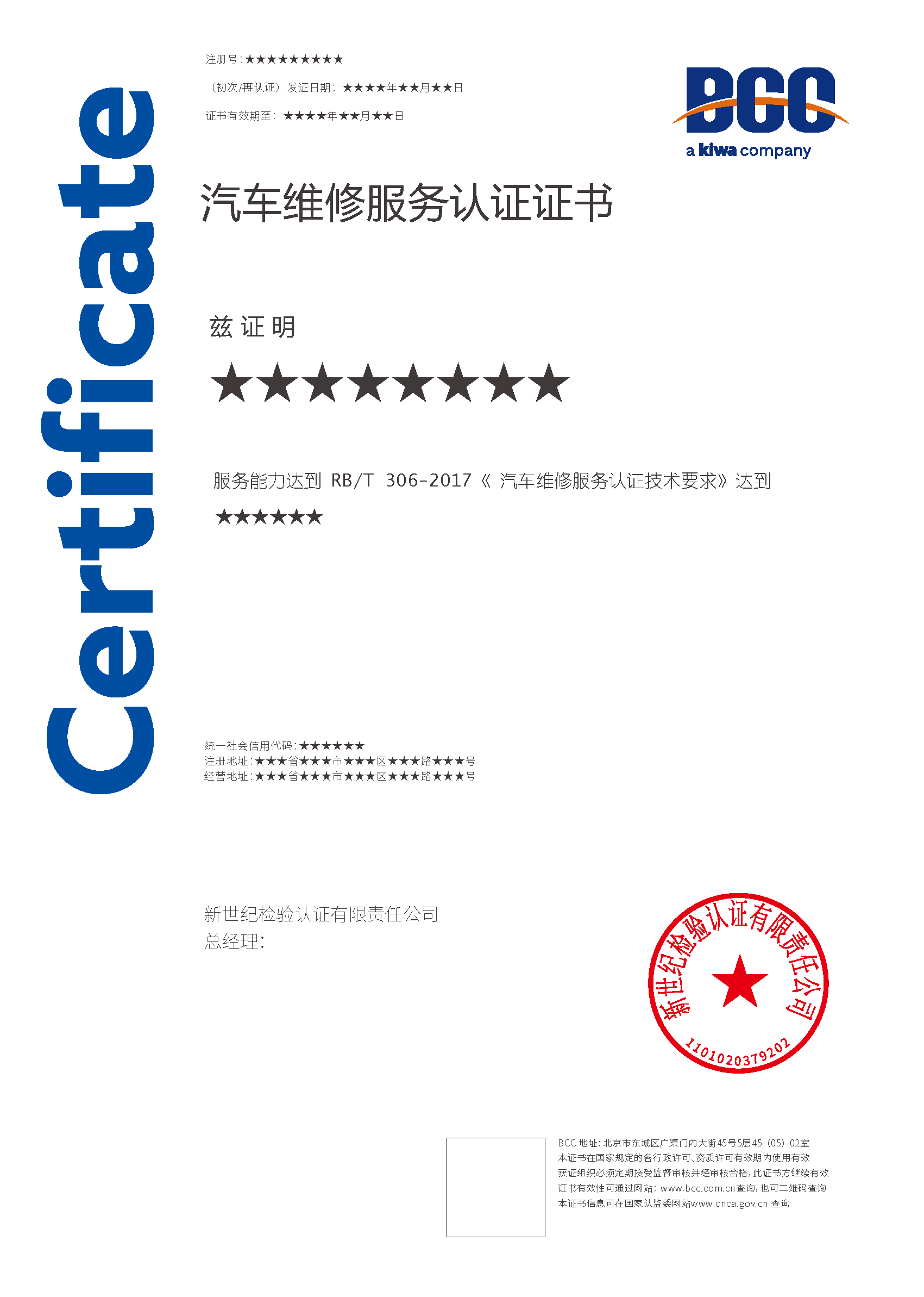 本頁涉及的認證服務中均有對應的《認證實施規則》,BCC擁有其最終解釋權。任何組織及個人未經BCC許可,不得以任何形式全部或部分使用(法律要求除外)認證相關信息。如需獲取相關實施規則請用以下方式聯系獲取:電話:010-58579316 郵箱:fwjs@kiwa.cn