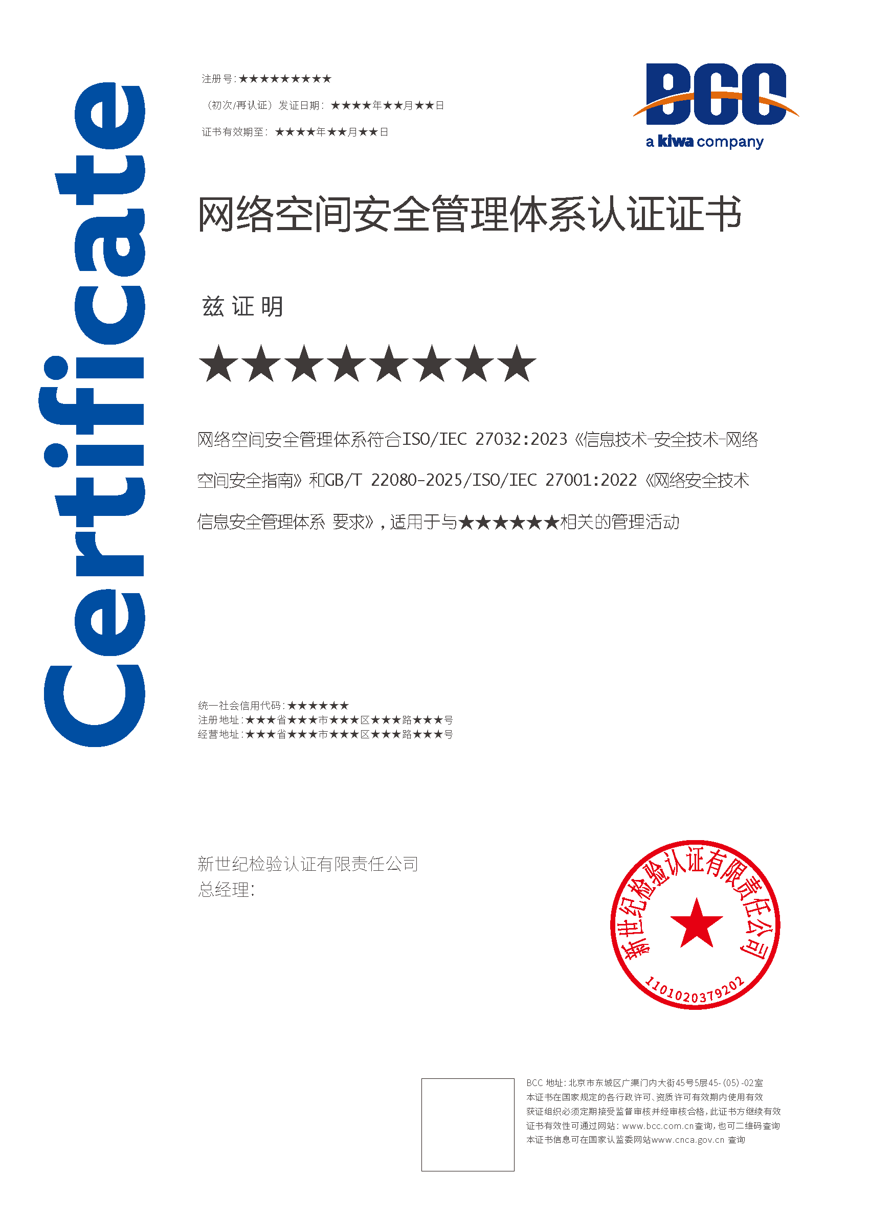 本頁涉及的認證服務中均有對應的《認證實施規則》,BCC擁有其最終解釋權。任何組織及個人未經BCC許可,不得以任何形式全部或部分使用(法律要求除外)認證相關信息。如需獲取相關實施規則請用以下方式聯系獲取:電話:010-58579316 郵箱:fwjs@kiwa.cn